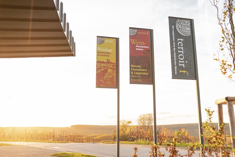Das Konzept „terroir f – die magischen Orte des Fränkischen Weins“ wurde im Rahmen des Weintourismuskonzeptes „Franken – Wein.Schöner.Land – Reisen zum Frankenwein“ entwickelt. In Zusammenarbeit mit der LWG und dem Fränkischen Weinbauverband sowie unterstützt durch das Bayerische Staatsministerium für Ernährung, Landwirtschaft und Forsten soll das Projekt den Besucherinnen und Besuchern die Schönheit der fränkischen Kulturlandschaft nahebringen. Ein weiteres Ziel ist die kreative Vermittlung verschiedener Themen, die entweder den Wein selbst betreffen oder Schnittstellen mit dem Weinbau haben, wie Natur, Landschaft, Geologie, Kultur und Geschichte.