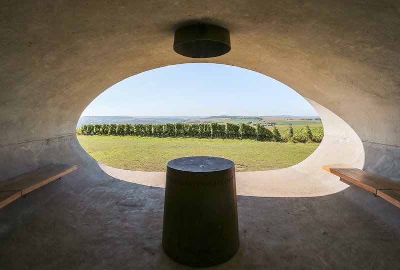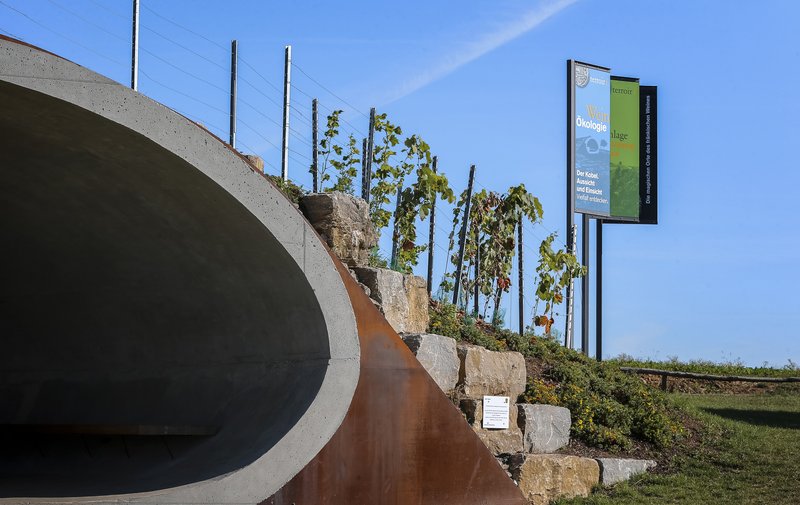 In Rimpar stand am terroir f die Natur Pate für ein mutiges und spektakuläres Bauwerk. An diesem magischen Ort empfängt der Kobel die Weinflaneure. Wie ein gewaltiges, aus modernen Materialien errichtetes Eichhörnchennest thront er in der Lage Rimparer Kobersberg. Ob im Inneren des Nests oder auf seinem begrünten Dach: Überall ergeben sich beeindruckende Perspektiven, Ein- und Ausblicke. Wer danach noch den ökologischen Weinwanderweg erkundet, dem erschließt sich das ganze Ökosystem Weinbau.